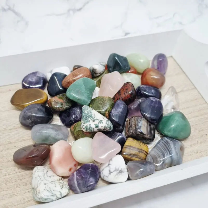 Ko sem prvič videla to pošiljko, me je preprosto prevzela živahnost barv in tekstur. Vsak kamen, majhen in popolnoma brušen, s svojo gladkostjo vabi k dotiku, k raziskovanju. Ta mix ni samo vizualno privlačen, temveč nosi s seboj tudi obljubo o neštetih možnostih za osebno rast in dobro počutje. Lahko ga uporabite za meditacijo, za izdelavo kristalnih mrež, kot dekoracijo ali pa preprosto, da si podarite trenutek radosti ob opazovanju njegove lepote.