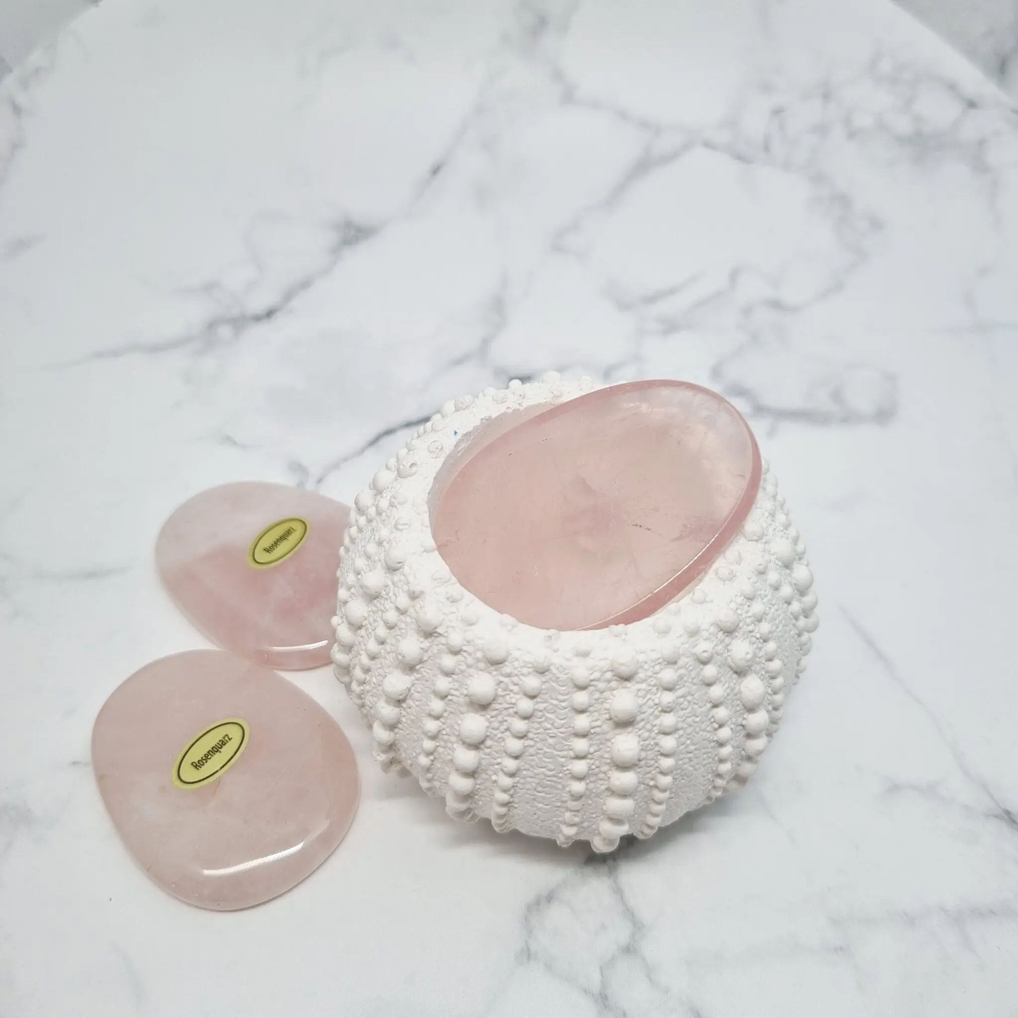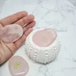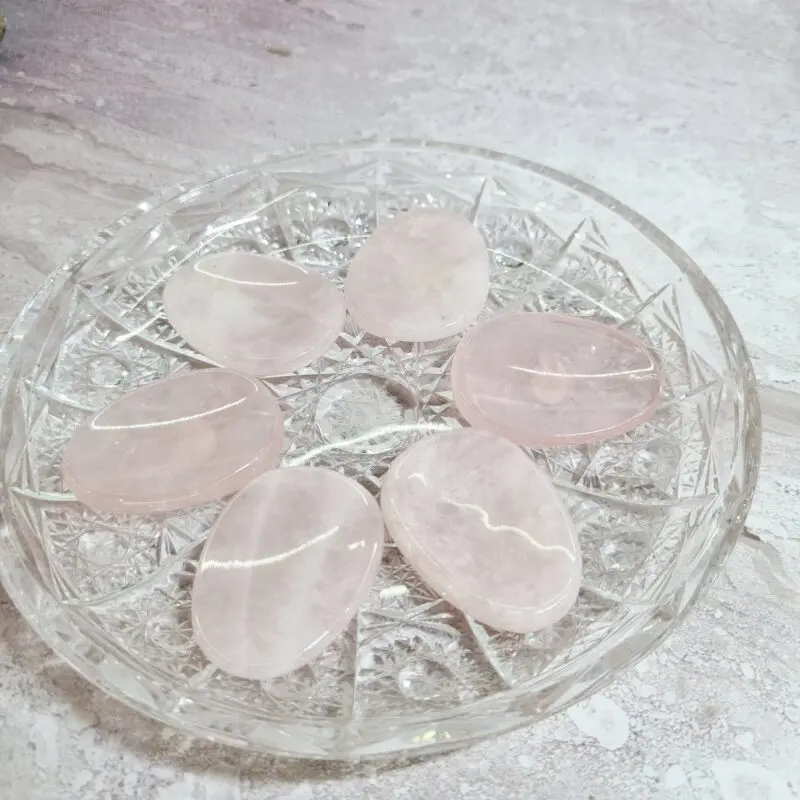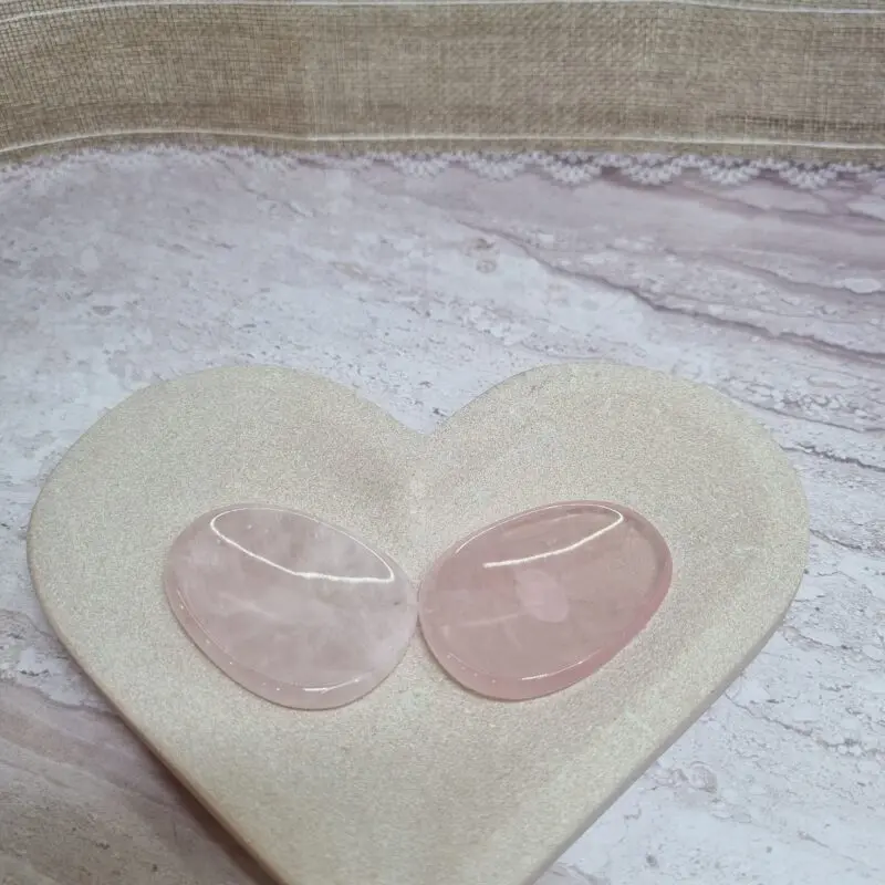 Naše kamne roževec, worry stone, odlikuje nežna rožnata barva, ki se lahko giblje od zelo svetlo rožnate, skoraj prozorne, do globljih, nasičenih tonov. So popolno gladko polirani, kar omogoča prijeten občutek ob dotiku. Oblikovani so v ovalni obliki, z majhno vdolbino na eni strani, ki je kot nalašč za udobno namestitev palca med drgnjenjem. Njegova svetloba prebija skozi kamen, kar razkriva subtilne notranje vzorce in občasne drobne vključke, ki pričajo o njegovi naravni lepoti in pristnosti. Vsak kamen je unikaten, s svojo edinstveno nianso in teksturo, a vsem je skupna tista prepoznavna, srčna energija roževca.