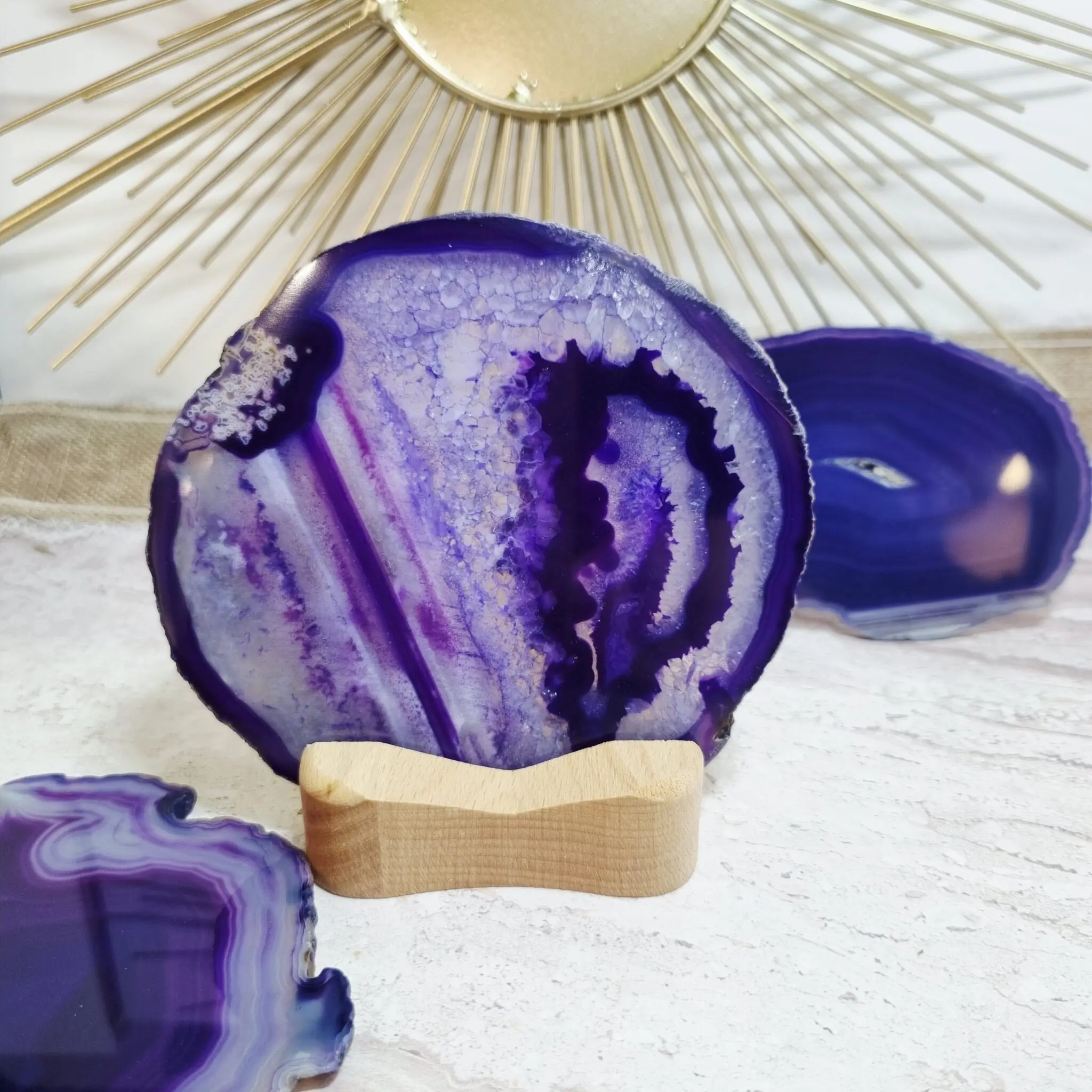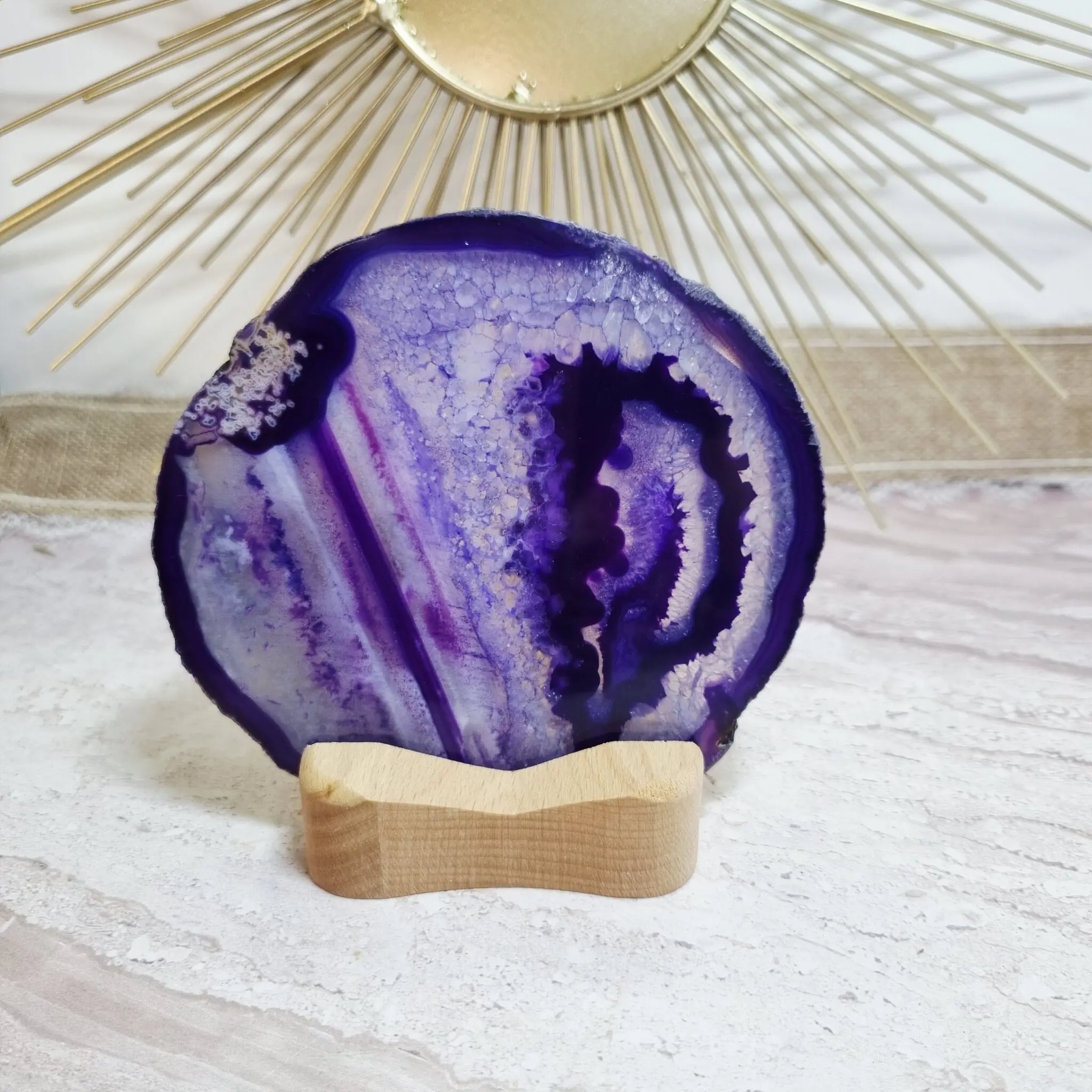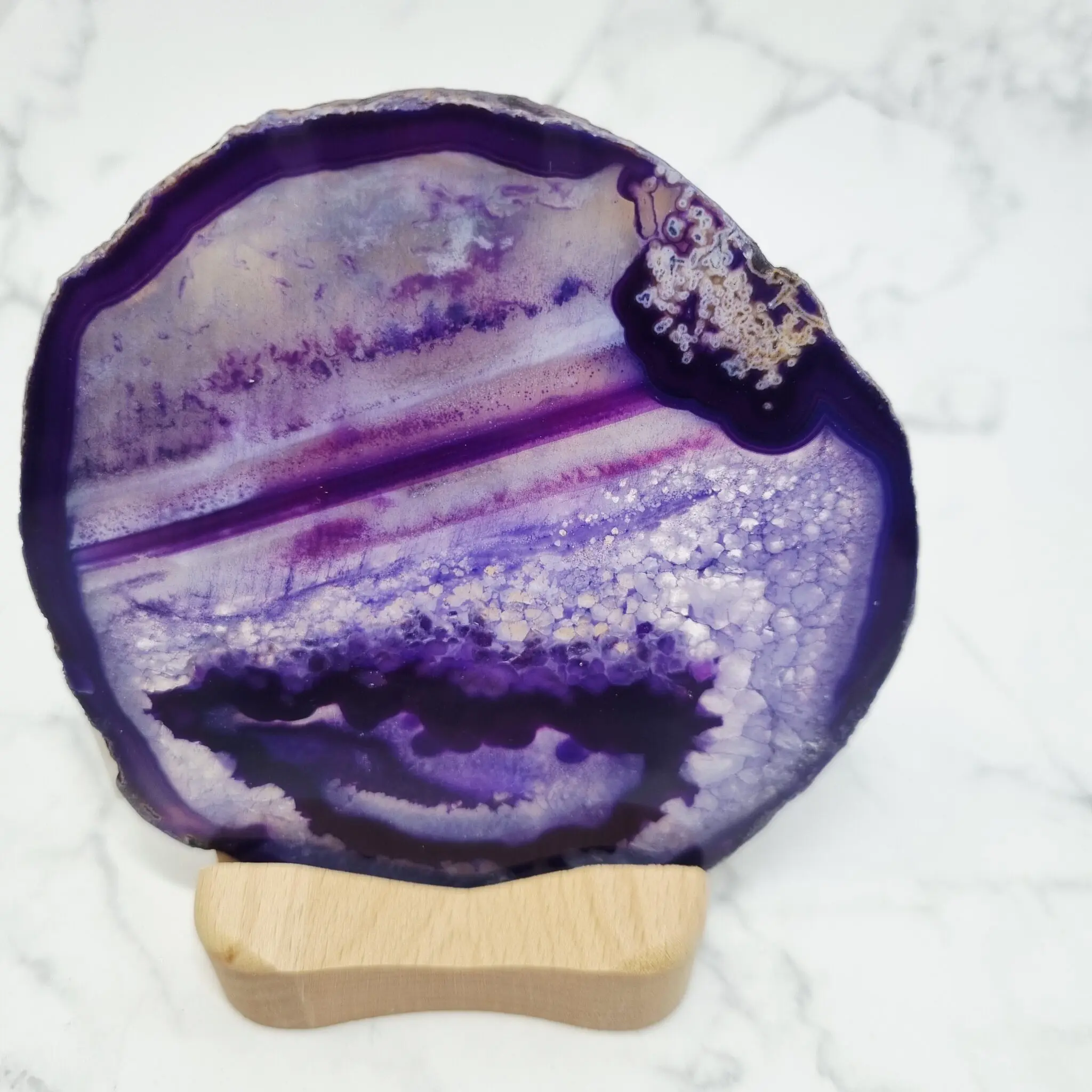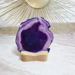 Ahat plošča vijolična na lesenem stojalu za svečko