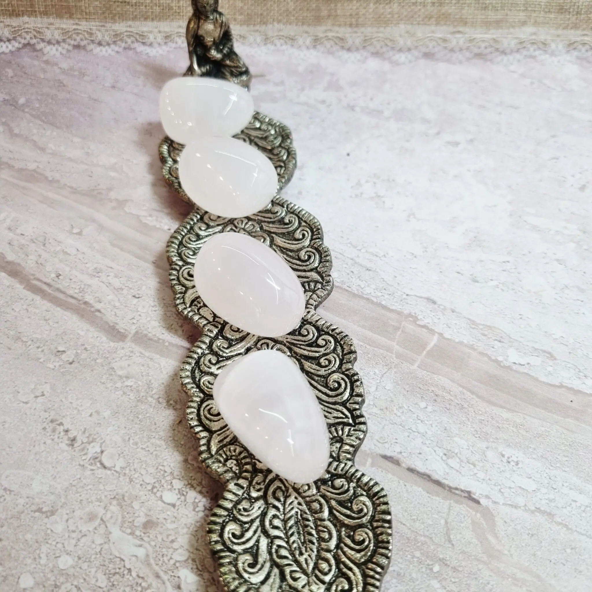 Ti Roževec mlečni, žepni minerali očarajo s svojo nežno, a poudarjeno rožnato barvo, ki spominja na nežno pomladansko cvetenje. Vsak kamenček je lepo zaobljen in poliran, kar ustvarja izjemno gladko, sijajno površino, ki vabi k dotiku. Tekstura je svilnata in hladna, kar še poudarja občutek miru. Na videz gre za mlečno strukturo, saj je roževec vrsta kremena, roza barvo mu dajejo vključki. Ta mlečni roževec pa je posebej, saj ravno s to mlečnostjo ustvarja nežen sijaj in daje občutek globine, ne da bi bil povsem transparenten. Oblika je ovalna, prijetna za držanje v dlani ali žepu, kar omogoča, da se njegova energija enostavno zlije z vašo. So popolni, preprosti in elegantni in bodo zagotovo dodali poseben dotik vaši zbirki.