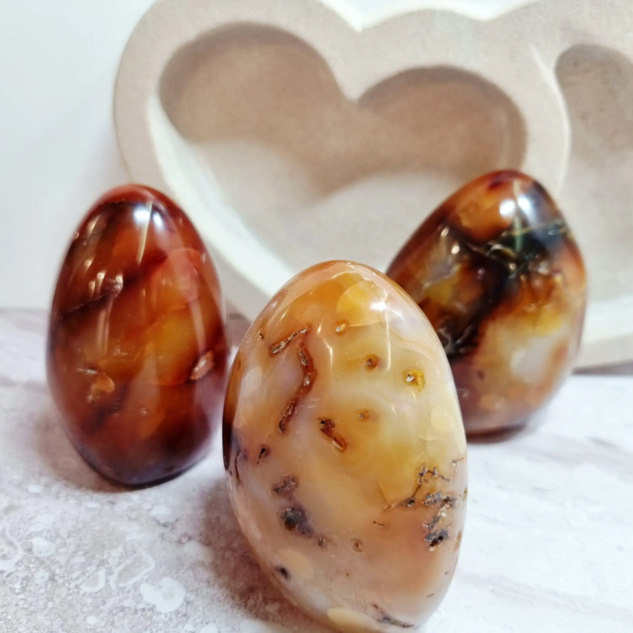 Karneol je že od nekdaj cenjen zaradi svoje ognjene energije in sposobnosti, da prižge našo notranjo moč. Je kristal, ki nas opominja na našo lastno vrednost in nas spodbuja, da se podamo v akcijo. Nič čudnega, da je tako priljubljen med tistimi, ki se želijo prebuditi, najti pogum in uresničiti svoje sanje. Sama ga vedno priporočam tistim, ki se počutijo brezvoljne ali potrebujejo “brco v rit” za nove začetke.