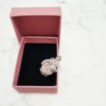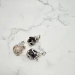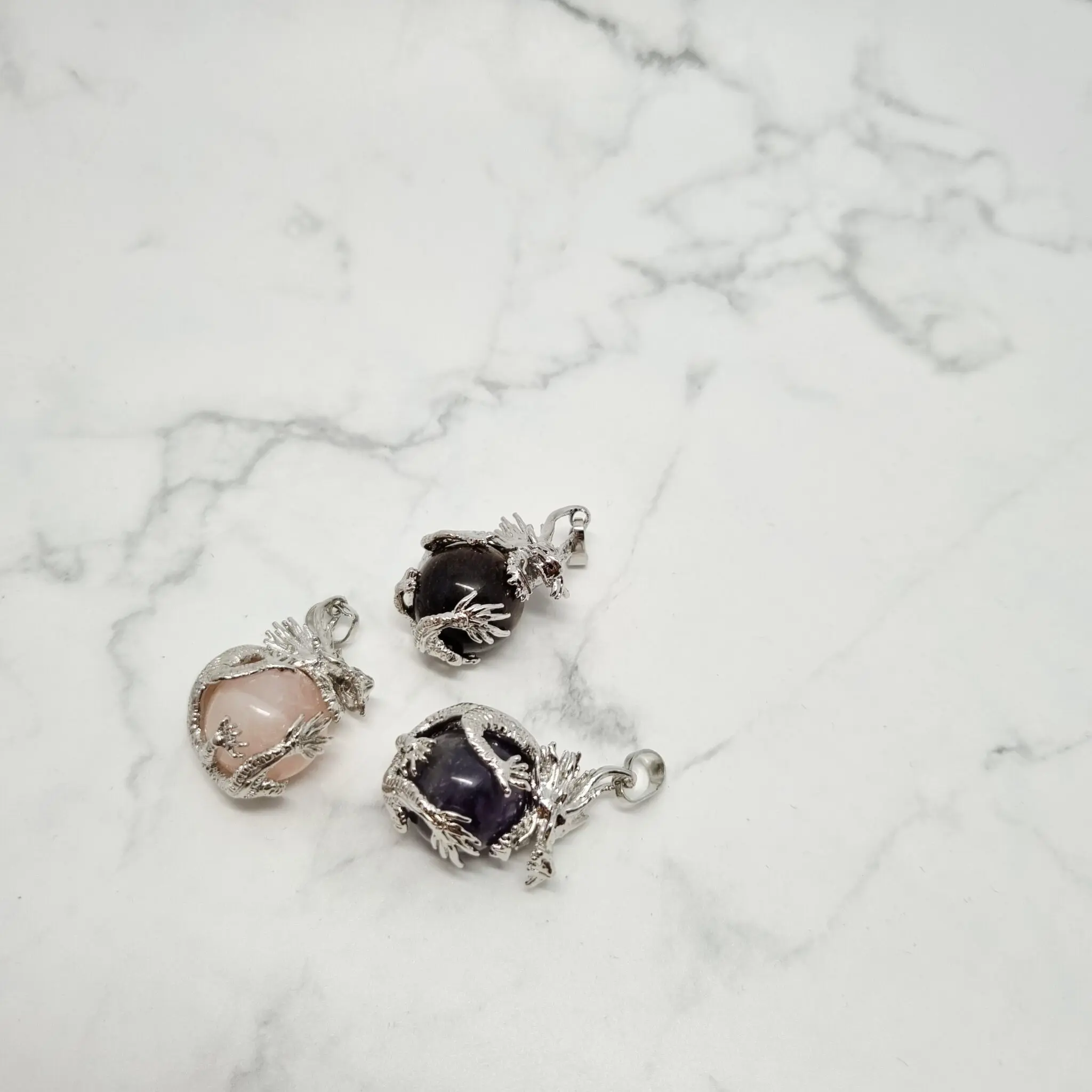Obesek je resnično očarljiv. V osrčju se bohoti nežno rožnat, zaobljen kamen roževca, ki s svojo mlečno prosojnostjo in finimi vključki ustvarja mehak in vabljiv videz. Roževec je objem v sijočem srebrnem zmaju, ki je natančno izdelan z bogato teksturo in detajli, ki mu dajejo močan, a hkrati eleganten videz. Zmaj se ovija okoli kamna, kot da ga varuje in poudarja njegovo lepoto, pri čemer na hrbtni strani spominja na luskasti oklep, ki se zaključi s členom za verižico. Srebrna barva zmaja poudarja naravni rožnati odtenek roževca, kar ustvarja čudovit kontrast. Ta obesek je prava umetnina, ki združuje naravno lepoto kamna z mistično močjo zmaja.