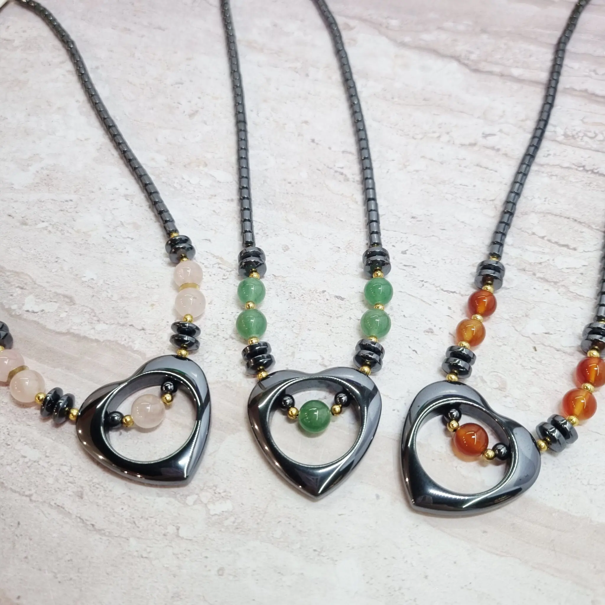 Ogrlica srce, hematit in roževec