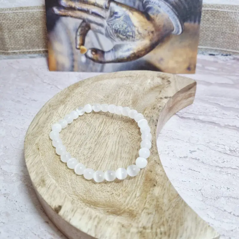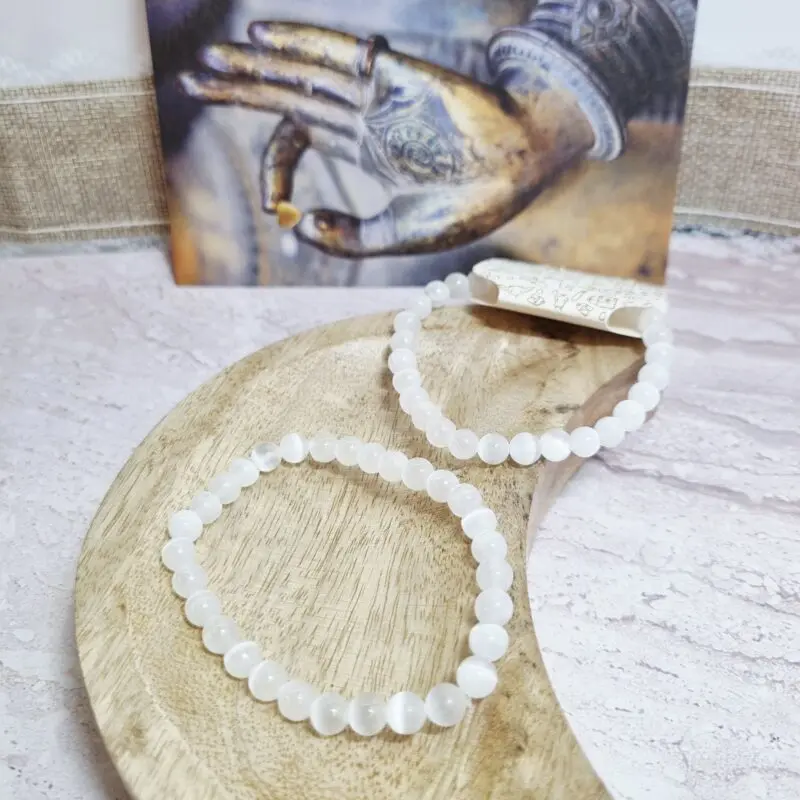 Je to energija, ki jo tvoja duša išče? Dovolite, da te zapestnica selenit, elastična, popelje na pot notranjega miru in jasnosti.