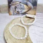 Zapestnica je sestavljena iz kroglic poliranega selenita 6mm kroglic, ki se lesketajo v nežno beli do prosojni barvi, kar kristalu daje eteričen, skoraj svetleč videz. Vsaka kroglica ima značilen biserni sijaj in gladko, zaobljeno površino. Zaradi svoje prosojnosti lahko selenit zajame in odbija svetlobo na čaroben način, kar ustvarja mehak lesk. Elastična vrvica diskretno poveže kroglice v udoben in prilagodljiv nakit, ki se nežno ovije okoli zapestja. Selenit je znan po svoji vlaknati strukturi, ki se pod določenimi koti svetlobe lahko odraža kot subtilne črtice ali sence, kar dodaja k njegovi edinstveni lepoti.