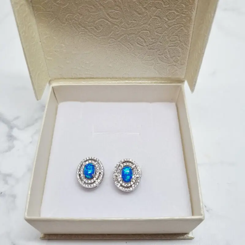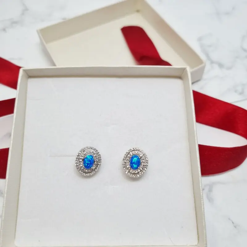 Srebrni uhani z modrim opalom, ovalni
